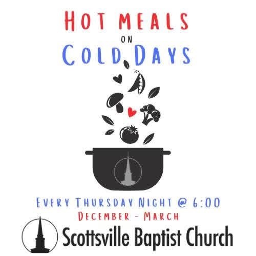 6 p.m. - Hot Meals on Cold Days (volunteers needed)